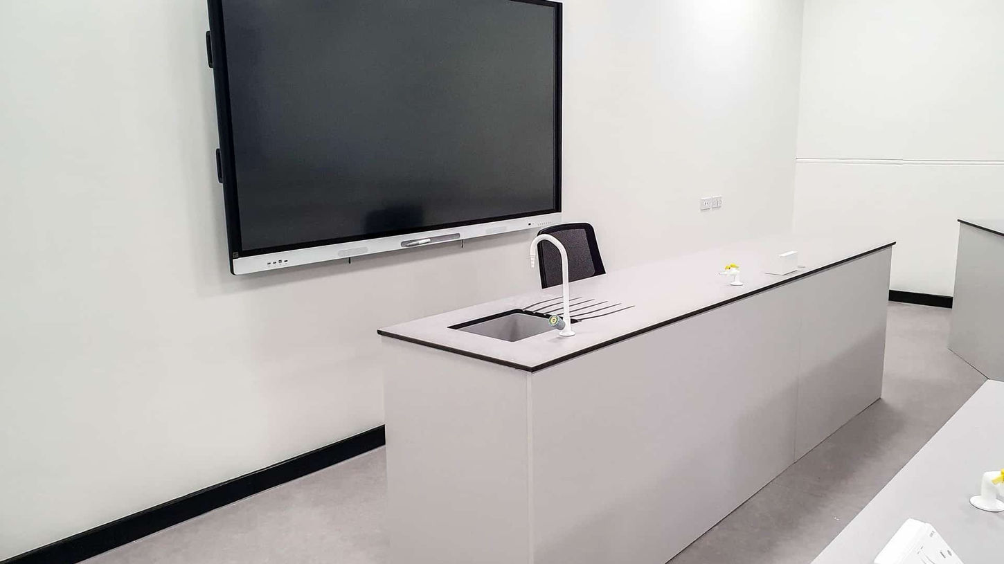 Brookhouse created 3D designs with stylish ‘crescent-shaped work benches for both Labs. The clever shape ensured great positioning for students during lessons so that everyone had good views of the teacher’s interactive screen.